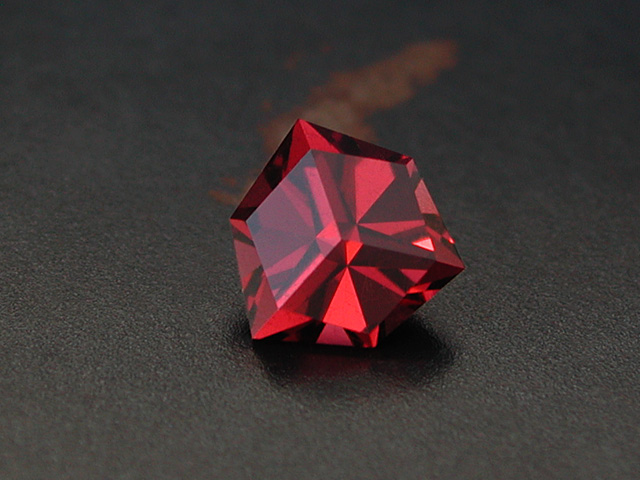 Manmade Bitterfeld Ruby The hexagon version of the "Cingili Mingili" with a small table. Nice gemstone even it isn't from nature. 3.08 cts. 7.8 x 6.3 mm available |