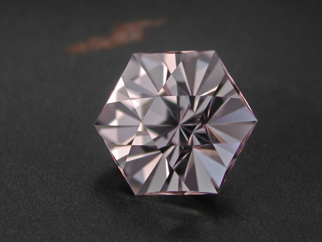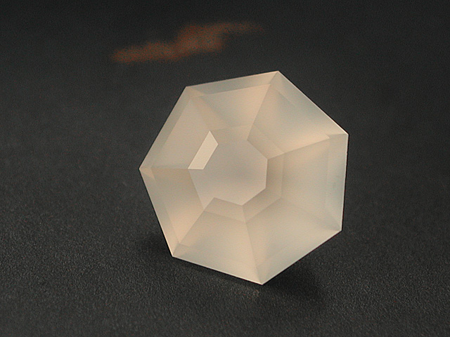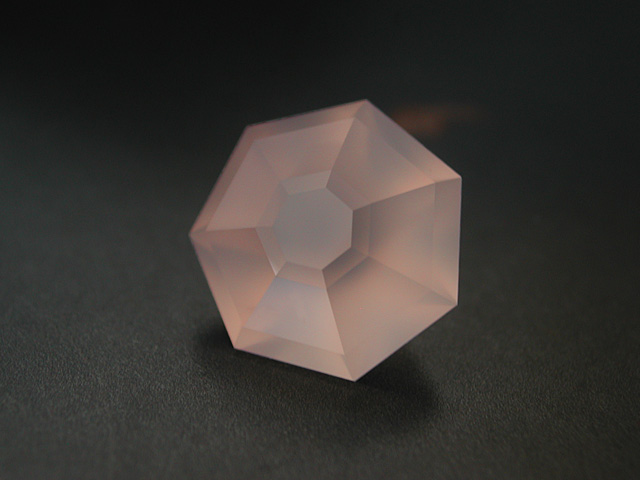 Malawi Chalcedony A malawi soft pink Chalcedony in the "Tudos's Kaleidoskop" design with a small table and some decent reflections. 3.90 cts., 10.7 x 8.0 mm available |