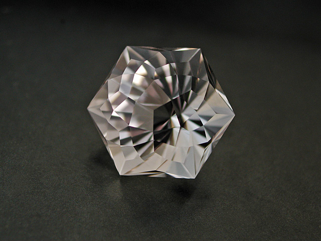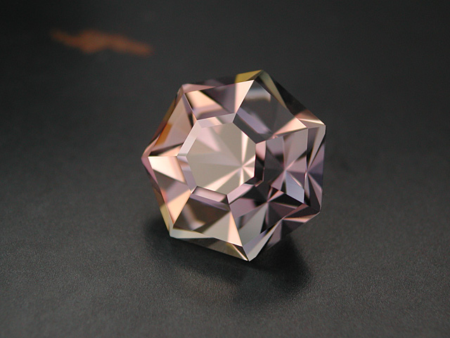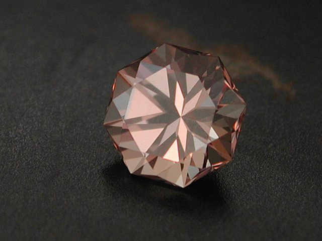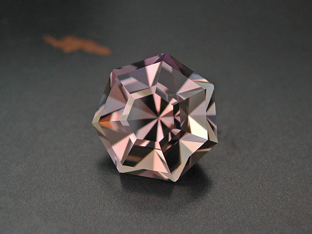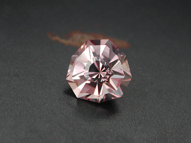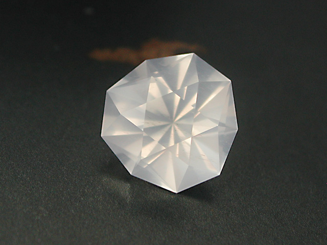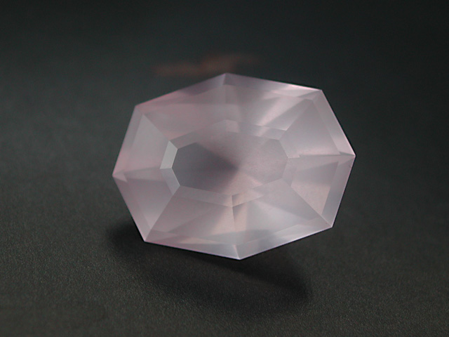 Madagascan Rose Quartz Soft-pink Rose-Quartz from Madagascar. Faceted in a longer version of my "Lighthouse of Porporela" design. 7.42 cts. 15.3 x 11.7 x 8.4mm available |