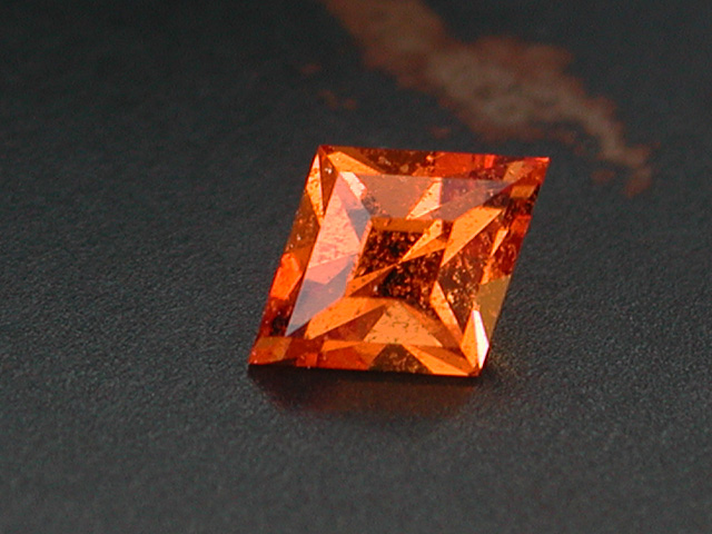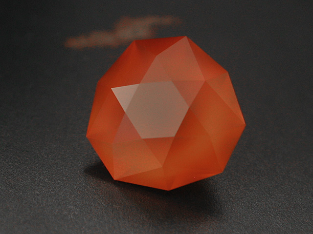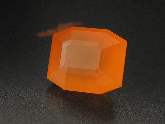 Madagascan Carnelion Light-orange madagascan Carnelion with strong silk. The design is M. Voltolinis cushion design with an extra phase around the table. 3.22 cts. 9.8 x 7.5 mm available |