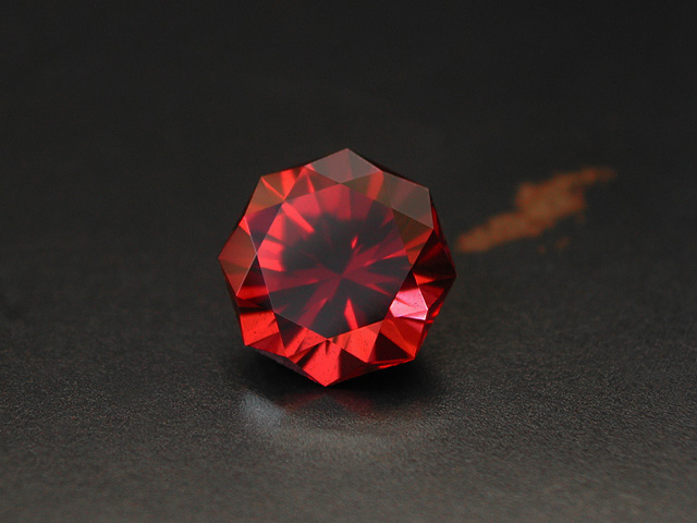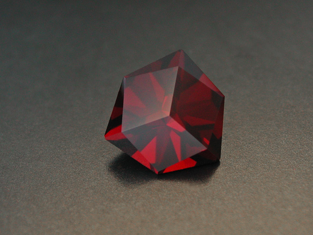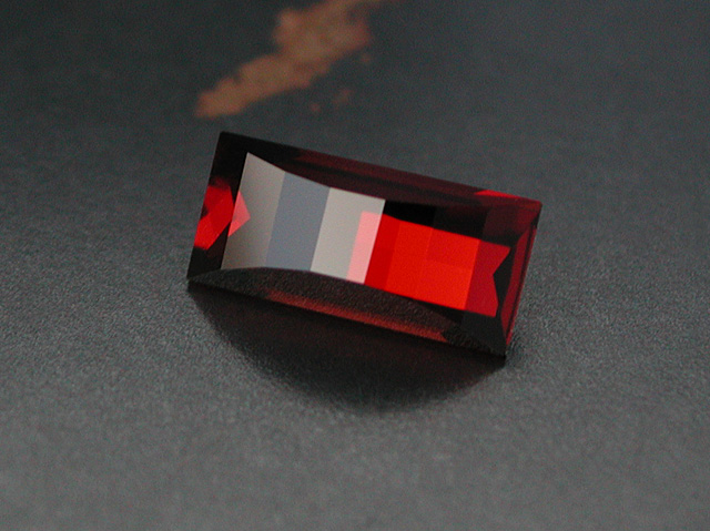 Tanzanian Rhodolite Pure dark red tanzanian Rhodolite. Another "Mini Opposed Bar" cut with its pixel reflections. Eyeclean clarity. 1.91 cts., 9.3 4.3 x 4.7 mm available |