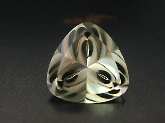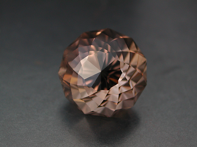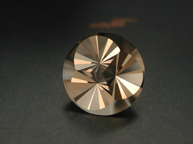 Surselva Smoky Quartz This is the brandnew "Palac Struga" design my 5th and (surely last) hemispherical design from this year. It is very much of the idea I always had in mind and am happy with it. The Smoky Quartz is from the Surselva region in Central Switzerland and was found from Matthias Benz a Strahler also from my hometown Munich. Look at his website: world-of-crystals.com This beauty is near flawless, super brilliant and has a very light brownish hue. 12.36 cts., 13.3 x 12.8 mm available |
